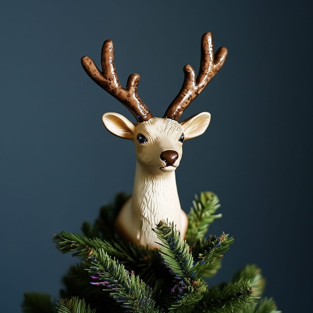 Honor Santa’s magical helpers with a reindeer topper. Metallic, wooden, or glittered reindeer designs bring both whimsy and elegance to your decor.