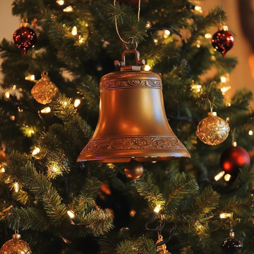 Opt for oversized gold bells or smaller clusters tied with ribbons for a traditional touch that pairs beautifully with metallic ornaments.