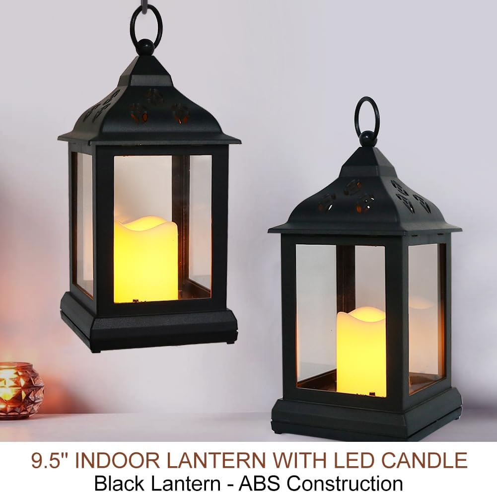 Go for lanterns and pine garland. It’s symmetrical, fast, and foolproof under $40.