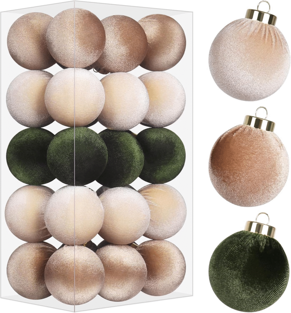 Ribbed velvet ornaments in muted tones bring plush, storybook warmth to any mantel.