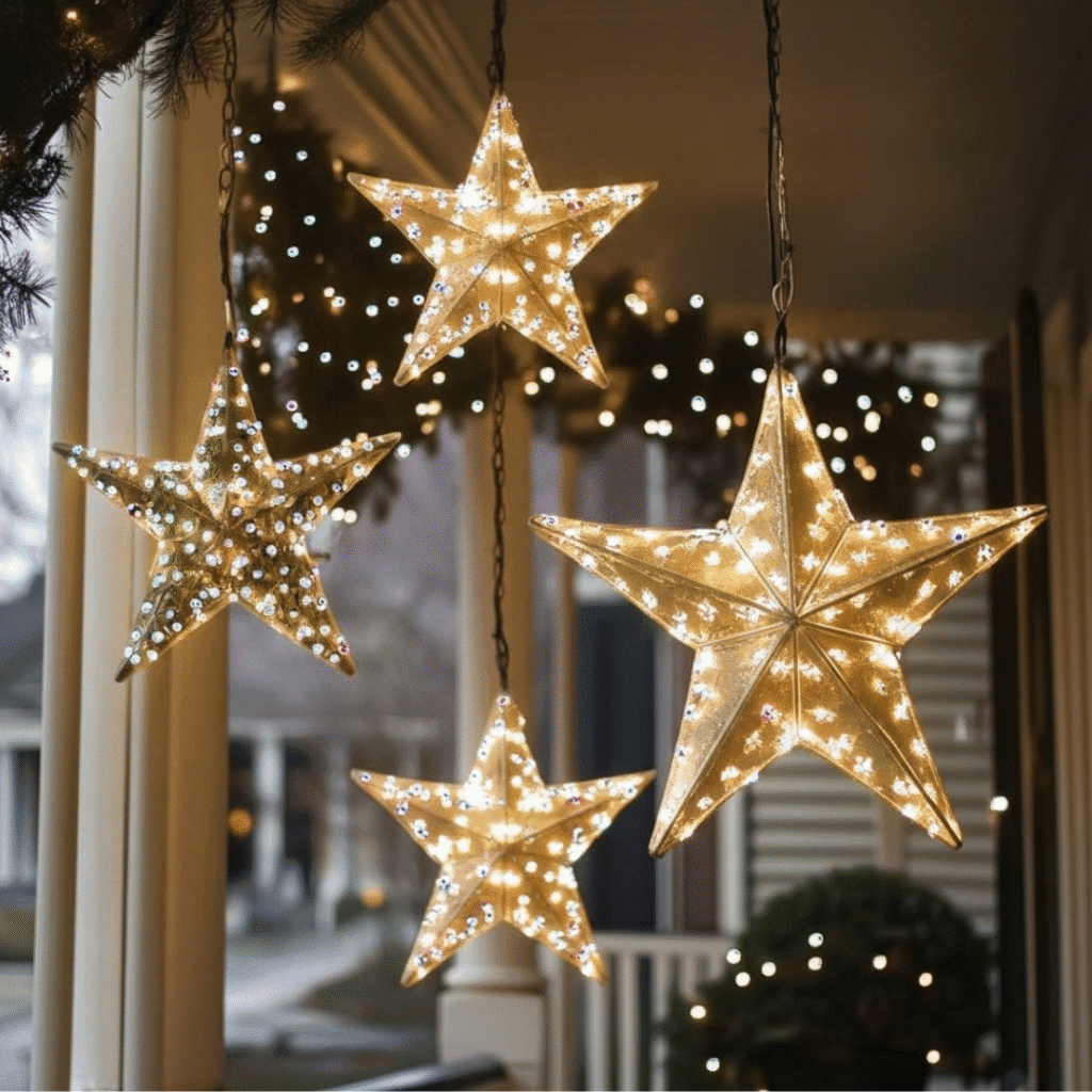 13. Illuminated Star Decorations for Nighttime Sparkle