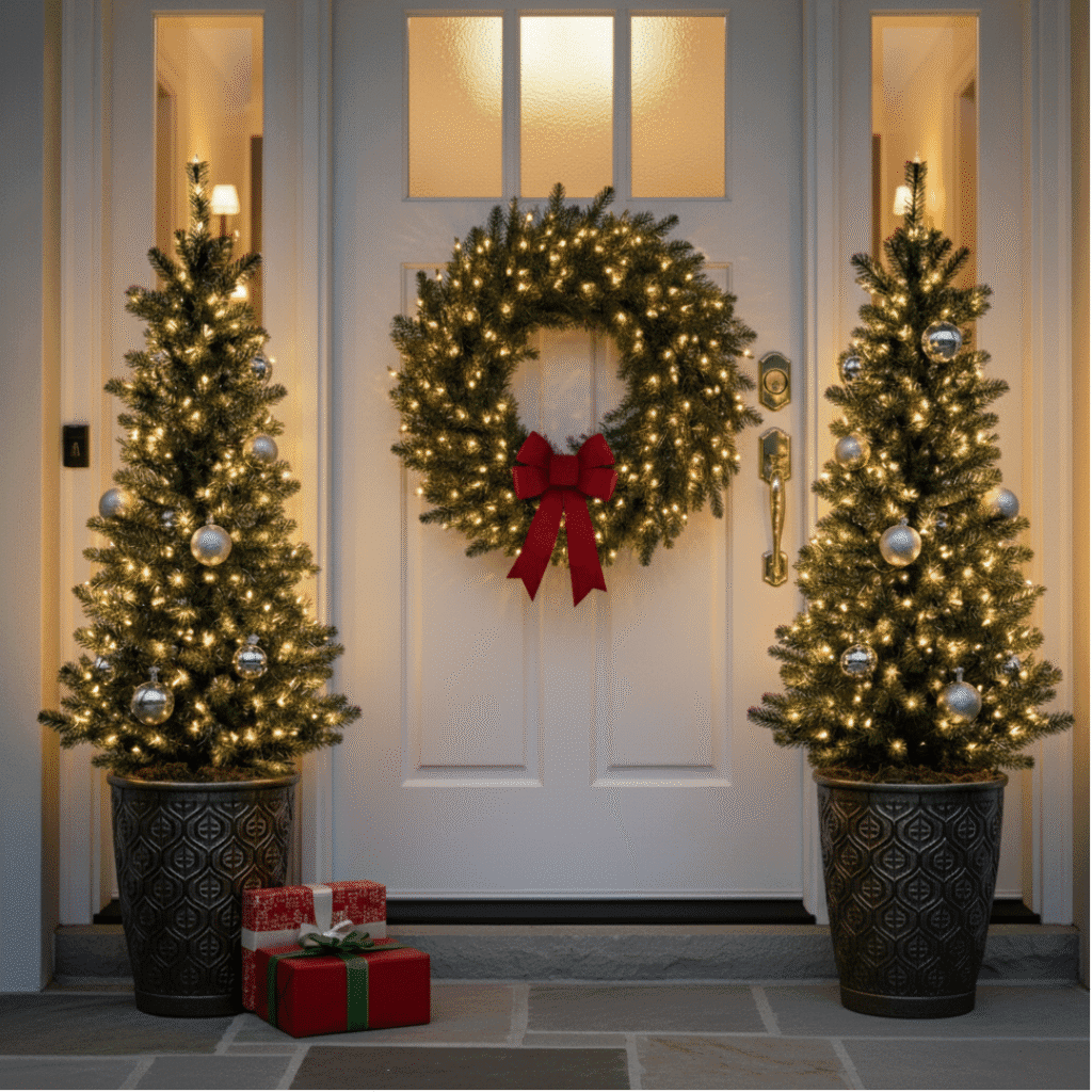 3. Pre-Lit Porch Trees for Perfect Symmetry