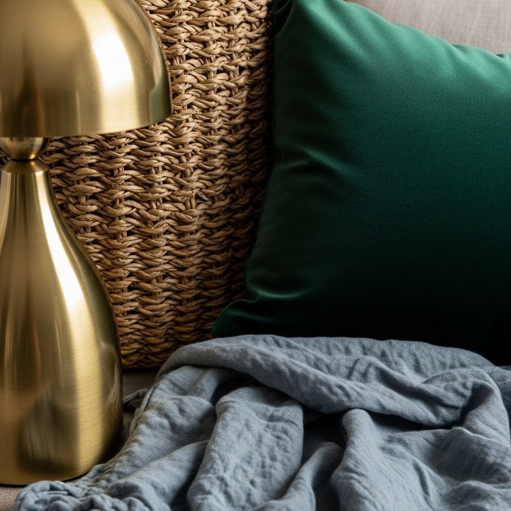 Sometimes, a brass lamp or woven basket does more for your palette than a painted wall.