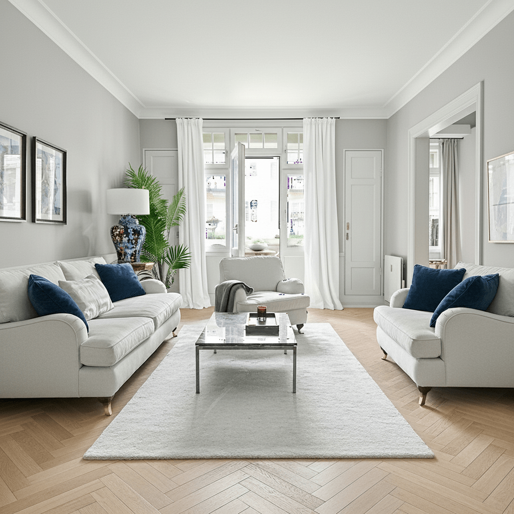 A neutral base (like beige, cream, or grey) paired with one or two accent colours gives you the freedom to evolve your space without a full redesign.