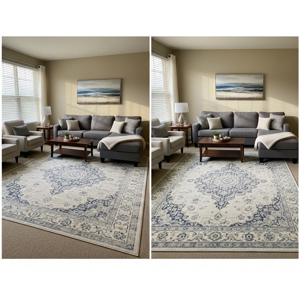 Pro tip: Always leave at least 8–12 inches of floor space between the rug edge and your walls. This gives the illusion of a larger room and prevents a boxed-in feel.