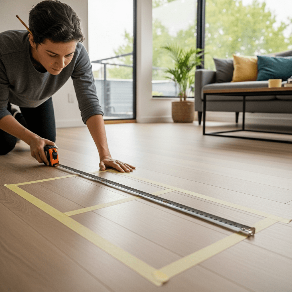 Grab your measuring tape before shopping. Measure your living room’s length and width, then subtract about 12–18 inches from each side.