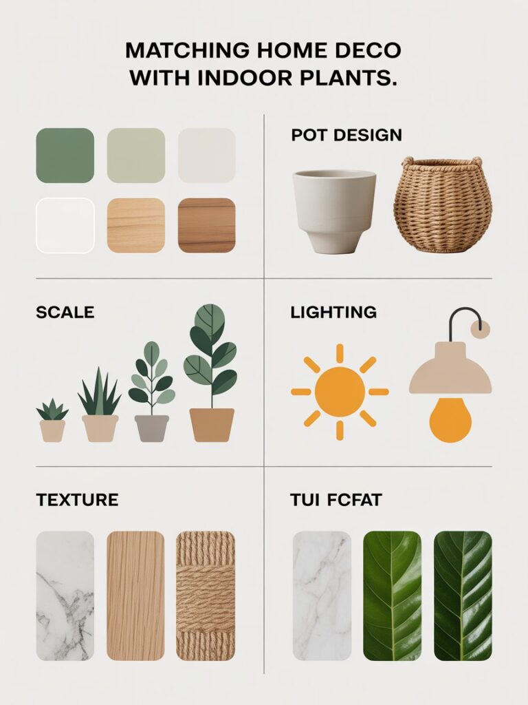 A typical design mistake is focusing only on plant aesthetics and forgetting color balance. To truly match your home decor with indoor plants in modern style, align your greenery with your room’s palette and materials.