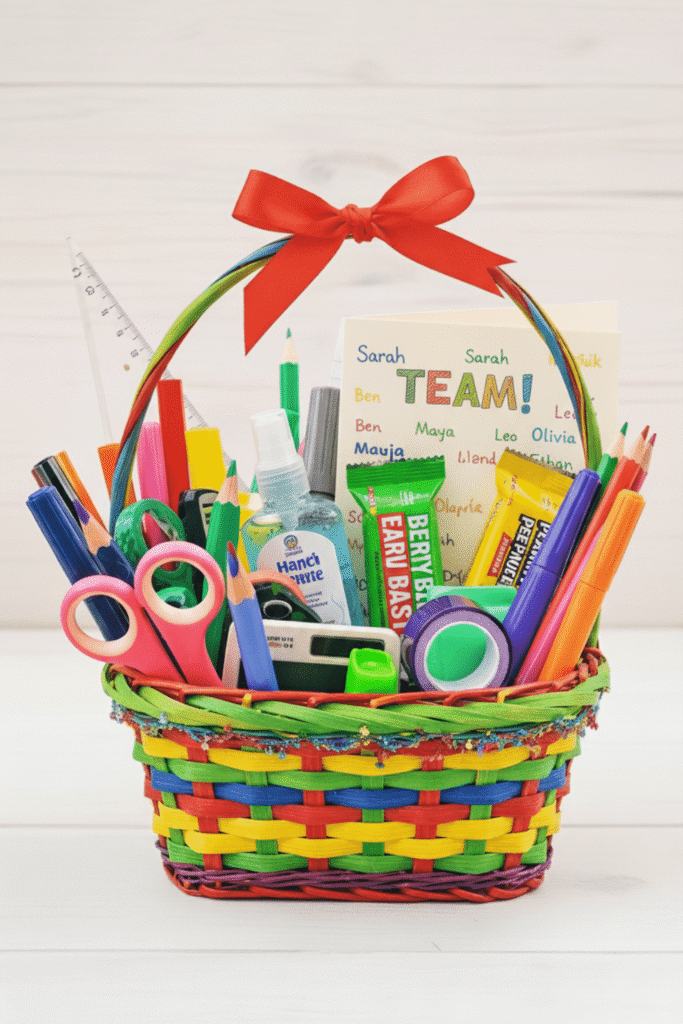 Teachers often buy their own supplies, so this basket is both practical and thoughtful.