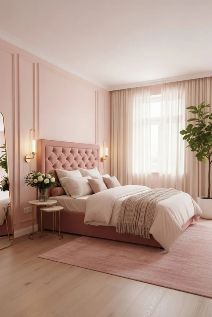 Blush pink continues to trend in 2026 for its ability to add warmth and softness without feeling overly feminine. It brings a gentle romantic touch to your space while still feeling modern and fresh. Pair it with gold fixtures or cream bedding for a refined, inviting look.