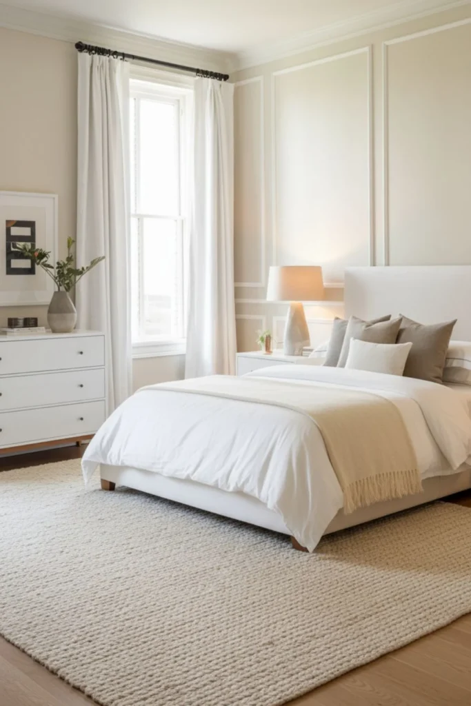 Greige, a blend of grey and beige, has become a go-to color for modern homes. It offers the perfect balance between cool and warm tones, creating a soft, sophisticated backdrop for any decor style. Greige walls pair beautifully with minimalist, Scandinavian, or transitional interiors, making it a versatile option for both small and large bedrooms.