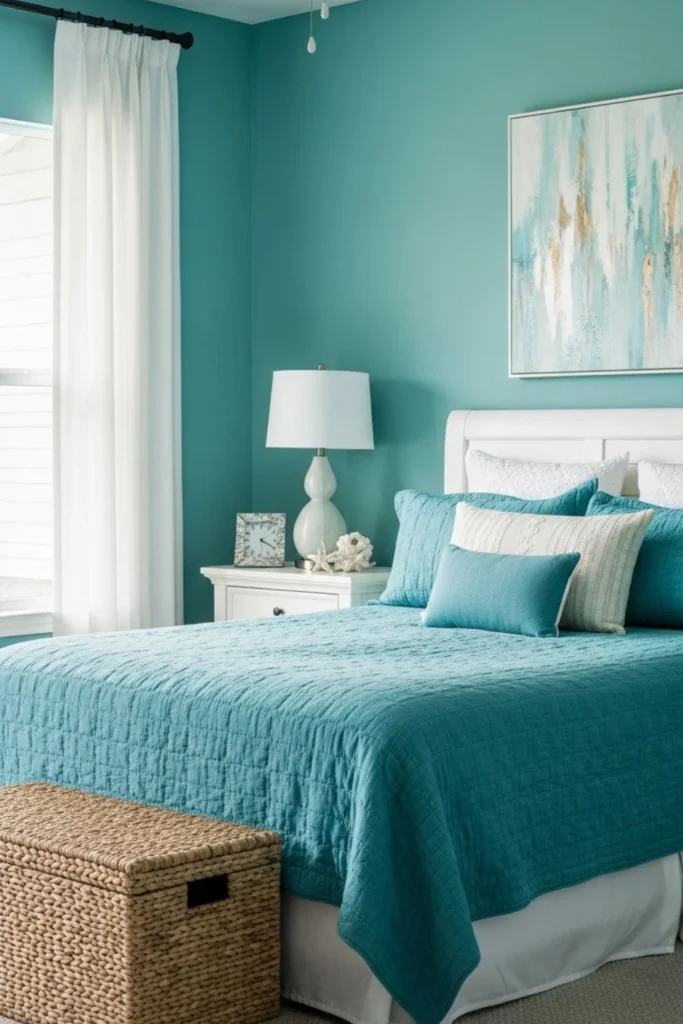 Ocean teal is one of the most refreshing hues in the latest bedroom paint colors palette. It merges the calm of blue with the vibrancy of green, evoking the feel of tranquil coastal waters. This shade is perfect for beach-inspired bedrooms or modern homes that need a touch of serenity and color.