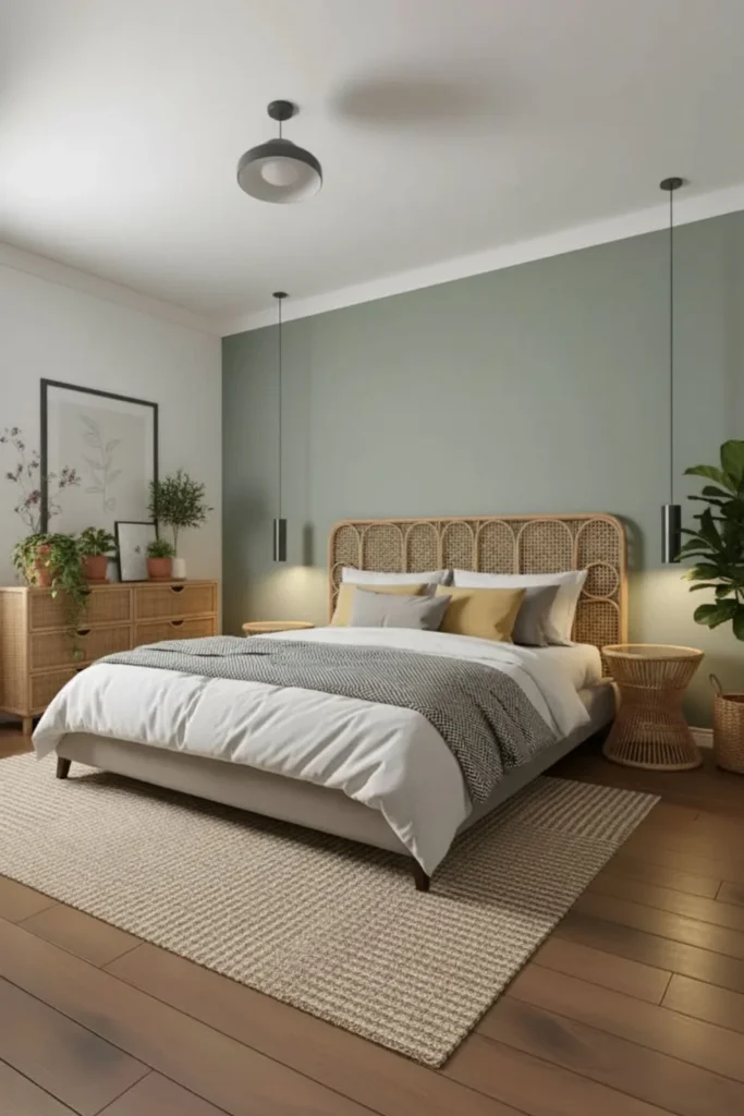 Sage green is a color that embodies calm, balance, and a connection to nature. It’s a favorite in both cottage-style and modern homes, and it pairs effortlessly with neutrals and warm woods. This shade works wonders in smaller bedrooms, giving them an open, airy feel without losing character.