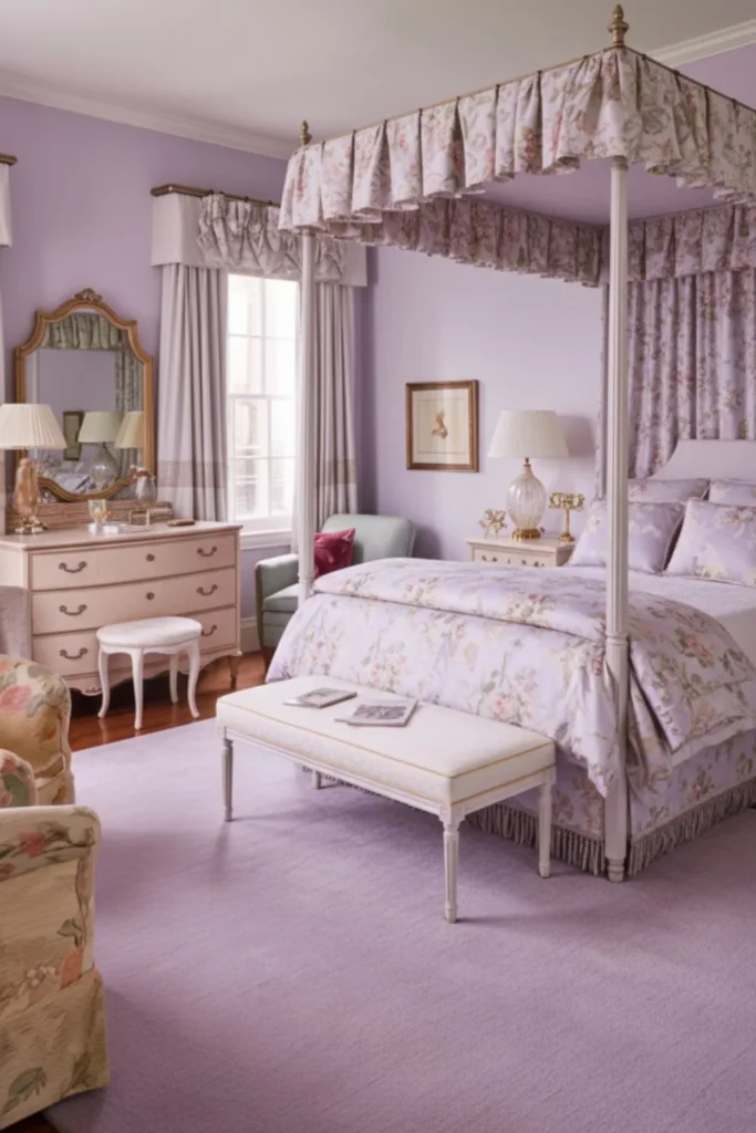 If you prefer a more romantic and dreamy space, soft lavender is an excellent option. This pastel tone promotes relaxation and creativity, making it perfect for winding down at the end of the day. It pairs well with neutral accents or metallic touches for an elegant, spa-like feel.