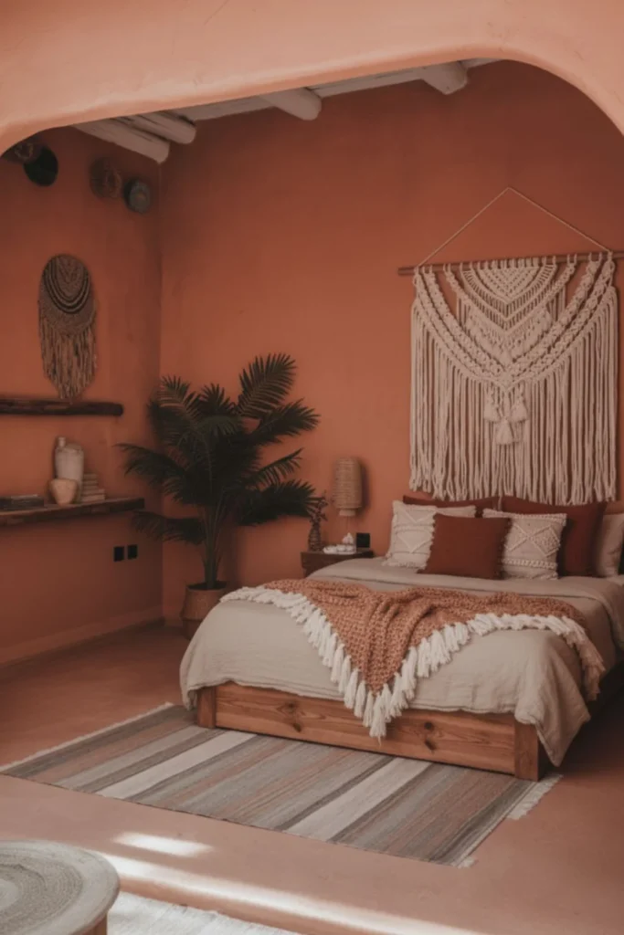 Terracotta is making a major comeback among the latest bedroom paint colors. This earthy hue radiates warmth and comfort, making it ideal for rustic or bohemian spaces. Pair it with soft beige linens, woven decor, and wooden furniture for a natural, inviting aesthetic that feels grounded and timeless.
