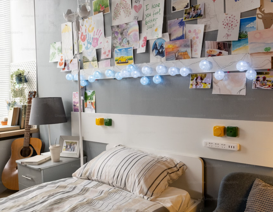 💡 Tip: Hang fairy lights above your bed for a soft and relaxing vibe.