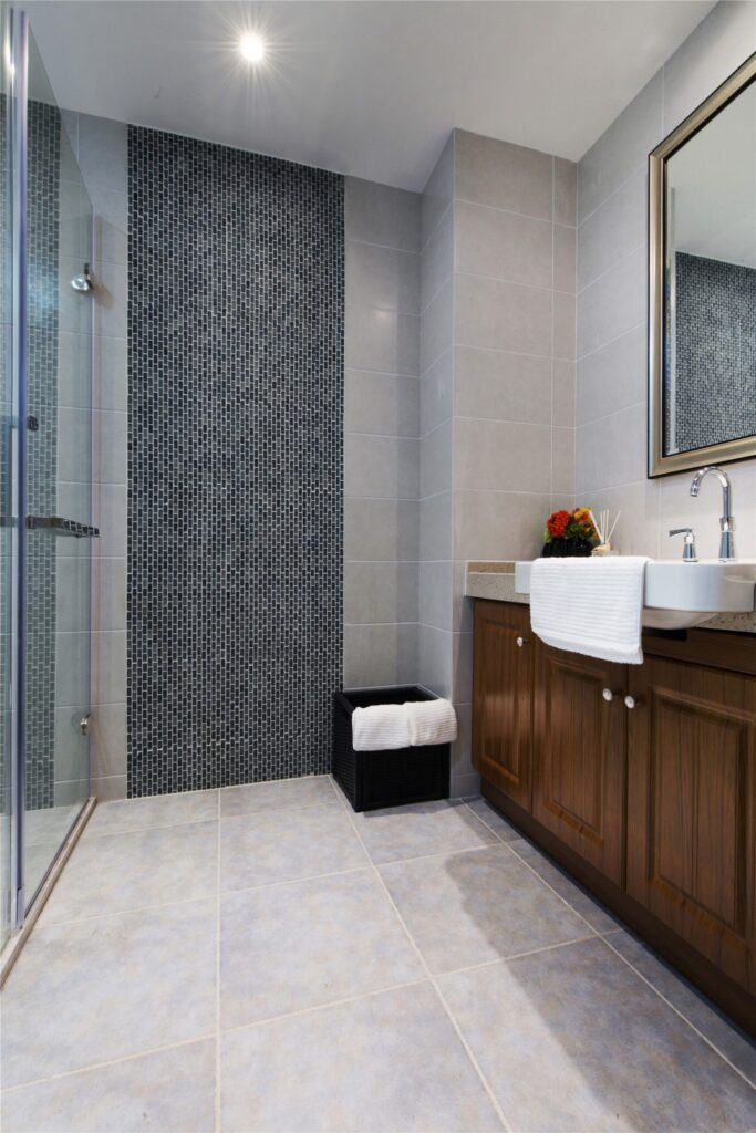 Larger tiles are one of the least expected yet practical small master bathroom ideas for visual expansion.