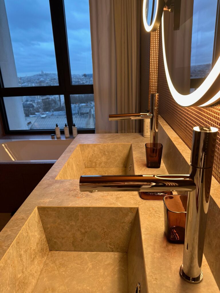 Use high-end finishes in small amounts, like marble tiles, gold hardware, or a backlit mirror. Layer lighting, add plush towels, and keep it clutter-free for a luxe effect.