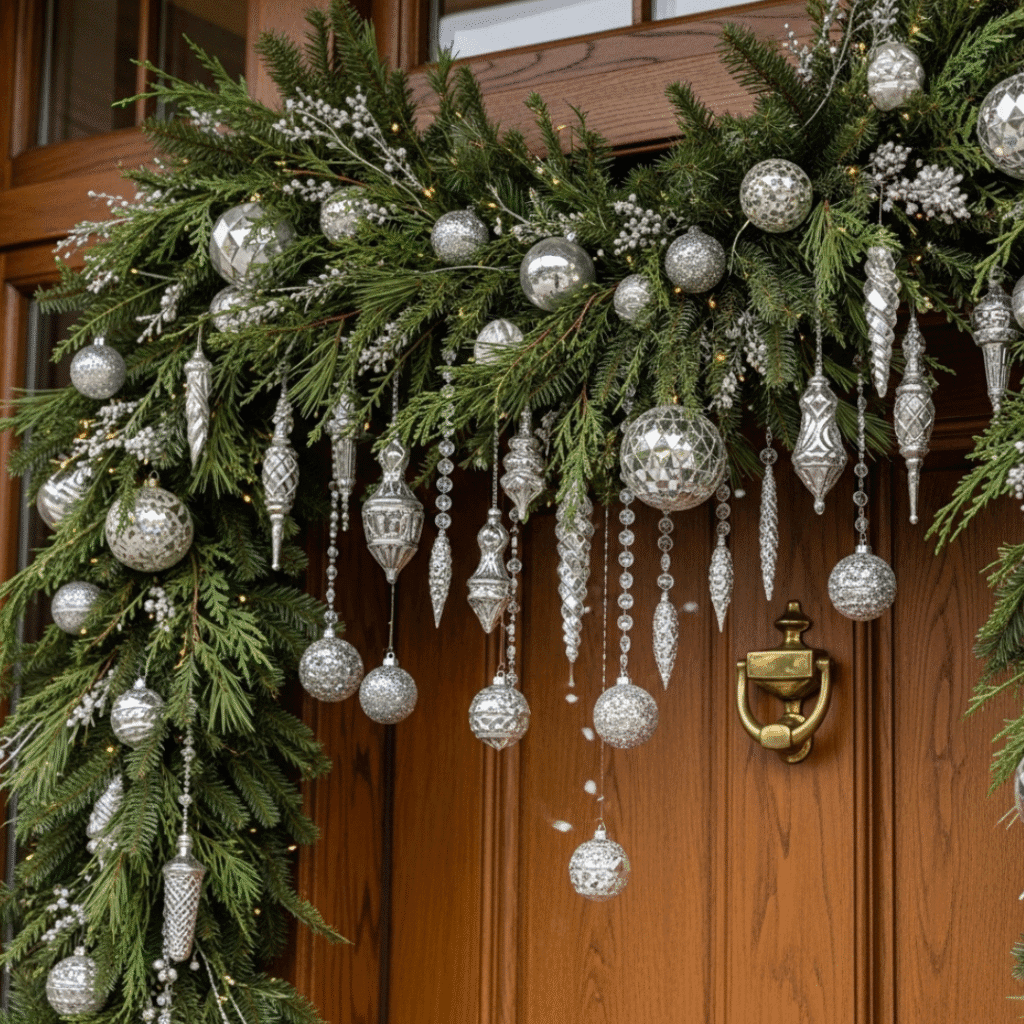 String ornaments of varying sizes directly from your garland so they dangle like shimmering icicles. This adds motion and sparkle, turning your doorway into a mini light show every time the wind blows.