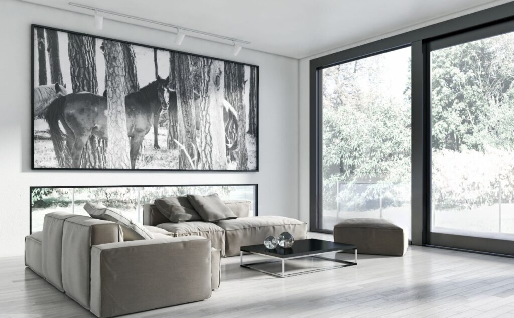 Black-and-white photography is gaining boldness in 2026, with massive floor-to-ceiling prints becoming a standout feature in modern homes.