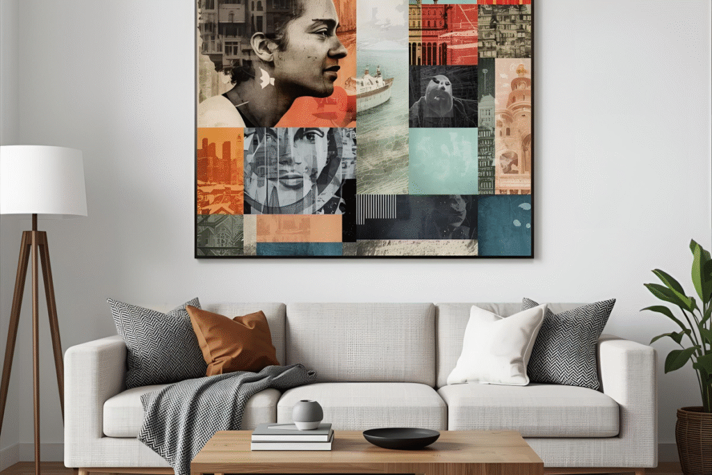 These collages are perfect for eclectic living rooms, showcasing personality and telling a story.